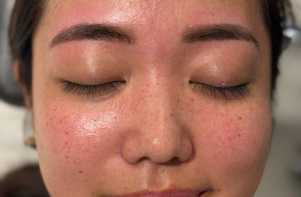 - De wenkbrauwen worden schoongemaakt en voorbereid.